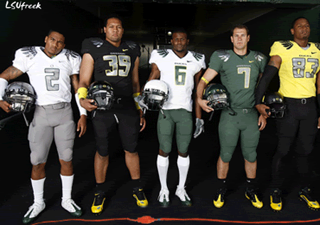 This is just the tip of the iceberg for Oregon's uniforms in 2009, really. Wings? Drake, pleeeeaaaaase. There are so may other ways this could go well, and by well I mean "with Oregon fans gouging out their eyes with plastic concession stand forks before kickoff."