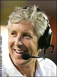 But as Meyer's courtship by ND and Florida last season was the paramount storyline for the coaching carousel, this year's will surely focus on one name and one name alone: Pete Carroll. The reasoning behind this seems to be that winning three national titles, which USC would be tantalizingly close to doing following a victory Saturday against UCLA, would pretty much present the extent of what Pete Carroll can do at the collegiate level. Being a twice-fired pro coach doesn't help quell the rumors, either. There's a plethora--yes, Pepe, a plethora-- of reckless speculation to be had, but we'd think that Carroll's departure would be a done deal in the next month: he's still young enough, has few old-school ties to USC (thus negating warm fuzzies from keeping him there,) and would slide back into the pro environment with few of the growing pains college coaches experience on their way into the bigs. Why not the 49ers, who are dead in the water under Mike Nolan? Carroll, a West Coast guy, could grab GM power he would never have in, say, Oakland, and stay relatively adjacent to family and familar faces. He turned them down last year because they wouldn't give him GM powers, but that was last year, and another year of misery in San Fran might change that.