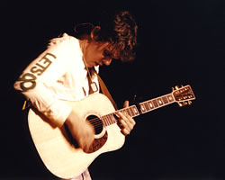 All of this made us practically Orgeronnically mad, but then came...the expressions. The mugging, smug, self-satisified array of looks Six-Stringy Fucktardo gives the camera is enough to make us want to drive to UConn and beat anyone bearing the slightest resemblance to a quivering, blood-sopped pile of mush and flannel. He flashes them with the shoddy confidence of a man whose equation for every evening went something like this: