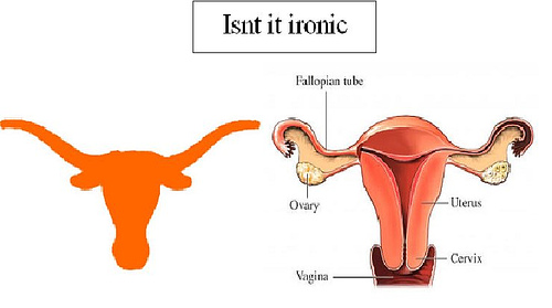 Here the reader inverts the seme/meme of standard Texan iconography by loosening the metaphorical moorings of the Texan longhorn symbol in a direct comparison with the female reproductive system, fusing the savage, Dionysian bravura of animal-enslaving cowboy Wild West imagery with the Apollonian, cold detachment of the anatomical, at once illustrating the anerotic notion of a woman’s most private parts cut and illustrated with the same cold calculation as the cattle on a ranch. In one sweeping collision of imagery, womb and cow meet under the scalpel, one enslaved by the lasso and barbed wire, the other by science, culture, and the anatomists’ hand. The cowboy is the invisible figure here, framing both with his desire to map, trap, and subdue all that is wild, rhythmic, and natural-in reality, the picture is his.