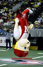 Live mascots may represent the most primitive level of fan worship, the actual physical incarnation of a team’s animus made animal, sitting there chained/leashed/tethered on the sidelines. Mascots are chosen like Indian totems, each representing an attribute or set of attributes the team seeks to adopt by proximity to the totem. The choice of attributes, however, is selective at best, and downright picky at worst. While Auburn may certainly want to be as ferocious as a Tiger, they would certainly not want to adopt the values of sleeping 20 hours a day, eating competitor’s young, and peeing on objects to mark their territory. (Though Auburn fans have certainly been known to pee indiscriminately after games, and are not alone in this behavior.)