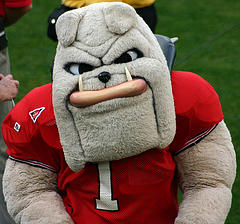 Which one looks more like a representative anthropomorphic slice of their fanbase? We don’t know many Georgia grads besides Bill Goldberg whose traps begin at their earlobes like Hairy Dawg’s; in fact, we don’t know many Georgia grads who’ve ever seen the inside of a gym they didn’t play dodgeball or four-square in, since working out is for the gays and the ladies.