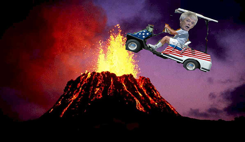 We’re disappointed, Arizona State. You may as well have used our favorite picture of Dennis Erickson ever-in fact, feel free to take it. It’s him loaded after 18 holes of golf in Hawaii driving his golf cart into a volcano. You just know he’d live to tell about it-anyone who coached the 1990 Miami Hurricanes can live through anything.