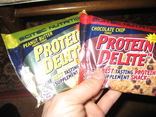Item: Protein Delite Cookies. It’s so good, you won’t even be able to spell correctly. We bought the chocolate “chip” and peanut butter variety for experimental validity to make sure that all varieties were equally inedible, but opted out of the oatmeal raisin since raisins, by even our liberal definition, are not “food.”
