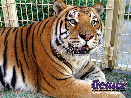 Meaning he's still staring through the bars, fantasizing about killing you, pulling your hide off, and eating every inch of you down to licking the marrow out of your bones. Because he's a Tiger, and they really are born to kill, mate, break down recruiting tape, and sleep just like the Orgeron without doing much else. (Little known fact about Tigers, the recruiting bit. Totally explains LSU's historically dominant recruiting, no?)