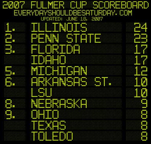 The rest stays static, with the "better and better" Illini still riding high on the burglary ring charges from way, way back in the Pleistocene reaches of one hundred and eleven days ago. The only real consolation is that you've lived this long without college football--sixty-eight days more is surely a cakewalk for a grizzled old scudder like yourself, no?