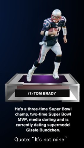 Stu: No problem, dog. So: on one side Tom Brady.
