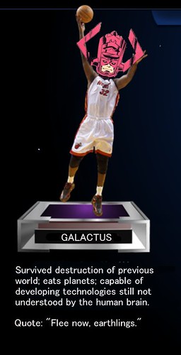 John K: I’m going Galactus, since he downed the entire city of Mumbai last night just to show how serious he is.
