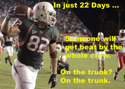 On that note, we give you the lewd and lascivious reminder that with the return of Luther Campbell and the phrase "butt buddies" working itself into their coaches' lexicon, Da U looks primed for a return to being Da U. To celebrate, we remind you that if they do return to the days of five-minute choreographed touchdown dances, then we're all getting a ride on the trunk from the 7th Floor Crew. On the trunk? On the trunk.