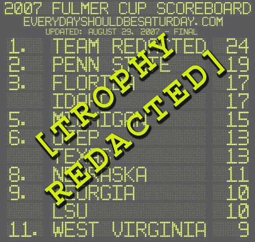 The winner of this year's Fulmer Cup for the Most Feloniously Frisky College Football Team is...