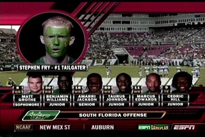 Preparr for ye keelhaulin, matey. After Texas Tech's team collapse versus previously toothless Oklahoma State (Sooner fans, make your own associations with that one,) someone on Texas Tech's staff had to walk the plank, and arrr, it was defensive coordinator Lyle Setencich. Oklahoma State had three players go for over 100 yards against the Red Raiders, who've struggled to find a second mate to shore up the splintery and cannon-heavy planks of the S.S. Leach for much o' the dread captain's career there. Under the bow with ye, Setencich! Bid good-morrow to the barnacles with ye back whilst you're down there! Hugh Laurie will soon be wearing green and gold. It's good to see Jim Leavitt's long climb through the salt mines of program-building pay off in both a victory against UNC, an 18 spot in the national polls, and in one of Britain's most respected gay thespians becoming their number one tailgater. Sometimes it rains hams and titties all at once, doesn't it? If we can just get Hugh Laurie to wear a Matt Grothe jersey on House now, we can get Peter King on this bandwagon, too--and when that happens, hot lovin' can't be too far behind. USF also broke out the wishbone on the goal line, earning retro-football boner points with us. We will officially fall even harder for the first team with the balls to go out there with special, facemask-free helmets with the formation. (Phil Knight! Merchandising opportunity! Dennis Dixon will love it, since he can't feel his face most of the time anyway, we guess!) Smelley Cock is the most luxurious. This bad Chinese menu translation brought to you by Matsumura Fishworks and the Tamaribuchi Heavy Manufacturing Concern of Japan and South Carolina coach Steve Spurrier, who likely all but ends the Blake Mitchell era by ceasing the dancin, dancin and announcing that Chris Smelley will be the new starter. Oh, and LSU makes a nifty fake in this clip from their 28-16 win over the Cocks. Steve Spurrier's face is a richly nuanced mix of envy, anger, and amusement. Les Miles' face says "YAYYYY TAFFY!!! I LOVE LOVE LOVE LOVE TAFFY!!!" Misery loves company. So we welcome Jon Wilner to the ranks of people who have difficulty remembering that their 4th ranked team lost, and probably needs to be moved down a sconce or two in the rankings, which is precisely what Wilner did. Just wait 'til Wednesday morning when we go Beano cook and rank Army, Notre Dame, and the Mexican Imperial Football Team of His Eminence Maximillian of Mexico in our top 25. Las Cronicas de Boss Hawg, cont'd. Michael Smith, Arkansas running back, fumbled late in the Kentucky game and helped the Wildcats take Houston Nutt's rhinestone-covered boot off their throat on the way to a 42-29 comeback victory. He was then arrested on Sunday on suspicion of using a stolen credit card. Houston Nutt's comment on the situation was that he was "disappointed." Lot of that going around in Arkansas in September, eh? <!-- End content section --> |