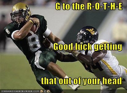 He’s a beast from the Big East. And when his kicker isn’t missing potentially crucial field goals, he’s bouncing to five dollar beats and pimping Matt Grothe’s website in song.