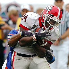 Georgia. I feel your pain, Orson, but what happened at the Cocktail Party was an essential bloodletting if Georgia is going to take control of this wayward division with the kind of year-end run it pulled off last year. Troy, Auburn, Kentucky and Georgia Tech stand between 10-2 and, if Tennessee loses one of its last three conference games, the East title. We always wish for the very best health and welfare on behalf of our fellow man, of course, of course, but re: Thomas Brown’s injury, any event that results in more carries by Knowshon Moreno is a