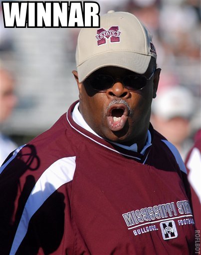 Milloy also called Petrino "a cancer," which is going a bit far. Cancer sticks around! Ah, cancer jokes. You never let us down. Also: everyone's lying, or half the people are telling the truth: Arthur Blank accuses Petrino's agent of telling "a fucking lie" in the AJC. Speaking of terminal diseases, the Michigan coaching search metastasizes into...Delaware? Michigan is reportedly very, very interested in Blue Hen coach K.C. Keeler, who may soon do what Michigan did not do this year: beat Appalachian State. The Blue Hens (we just like typing that name) face App State in the D-1AA (proper terminology) Championship Friday night, and Keeler says the game isn't a matter of an audition for the Michigan job, or even that of simply winning a game. IT IS ABOUT CHEATING THE GRIM REAPER AND SLIPPING THE SURLY BONDS OF THIS MORTAL COIL. "I said this and I'll repeat it again," Keeler said. "I didn't come here [to Delaware] to leave here. I love this place. It is, obviously, an honor to ever be mentioned for a job of any magnitude, especially one like that. "However, I am trying to get immortality, and immortality is a national championship. There's nothing more important to me than that. And that's all the kids care about, too." So, there's that Michigan fans. We understand there's an emphasis on longevity in Michigan coaching searches, but eternity's a bit of a stretch, right? Mississippi State is bringing much cowbell to the Liberty Bowl: they've already bought 30,000 tickets to the game, ensuring that the bowl game will be sufficiently CR00mXoR3D.