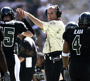 Why Jones would leave heaven to go to SMU baffles us, though the $50,000 recruiting budget might have something to do with it. Hawaii, BCS beating aside, has tons of intangibles for a coach: the lifestyle, the weather, the modest but easy recruiting ("Hey! Wanna play here, or go to hell and gone over on the mainland for four years?"), and the ability to run wacky run 'n shoot offenses with little critical scrutiny. It's the perfect biome for an odd species like Jones, who even with a 1.5 to 1.7 million dollar offer on the table has to consider what he move would entail losing: a job that will likely never fire him to retirement.