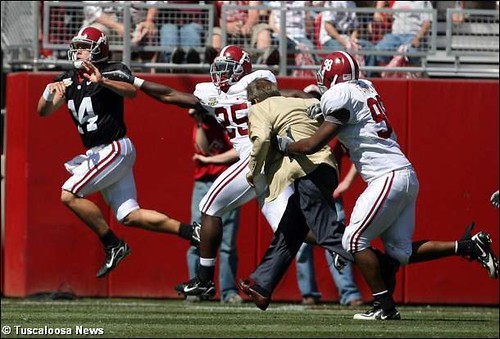 Or simply: "FREE RIBLET NIGHT ANNOUNCEMENT CAUSES CHAOS AT ALABAMA PRACTICE."