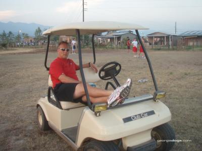 Tommy Tuberville, Charlie Weis, Mark Richt, Randy Shannon, and some dude who coaches at Yale are currently in the Middle East touring military bases. Osama, watch your fucking knees. (Seriously, this a very nice thing of coaches to do, and bully to them for it, because they really don't have to do this as wealthy, overpaid men with lots of money, etc, etc.) Mark Richt is having a globetrotting offseason, having just finished up a Honduran mission trip. (No circumcisions, reports Quinton.) The pictures depict Richt lounging in a downright Dennis Erickson-esque golf cart of death, though, further proof Evil Richt is in the house and taking no crap.