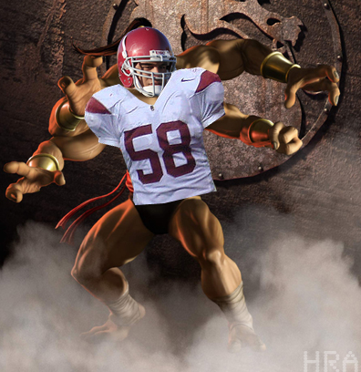 In Tuesday's Curious Index, we reported that USC's Rey Maualuga has perfected an on-field finishing move inspired by Mortal Kombat, wherein he is able to tear out an opposing player's spinal column and fashion it into a fetching boa in one fluid motion. Maualuga in fact intends to construct xylophones out of the bones he collects this season. We regret the error.