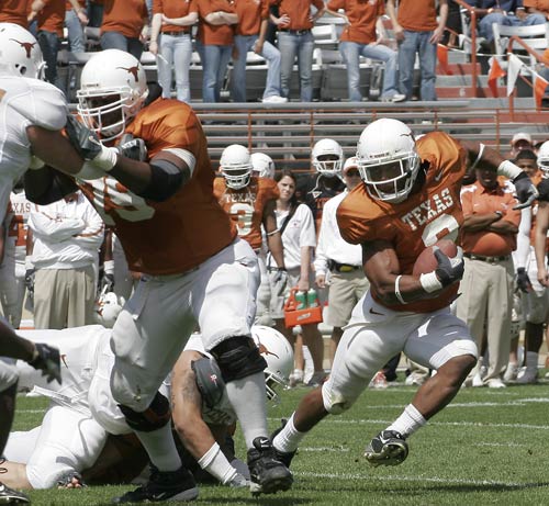 There is only one winner here: you, the viewer. Since Blon54 insisted we don't give enough props to the Big 12, we lead off with not one, but TWO notes on the Dustbowl SEC. The first is that the tailback race at Texas is down to two backs now that Foswhitt Whittaker, a.k.a. "Fozzy," has fallen behind due to a "minor knee injury." ("Minor" in football terms equals "severed below the leg by a shark on South Padre Island. 2-3 weeks.")