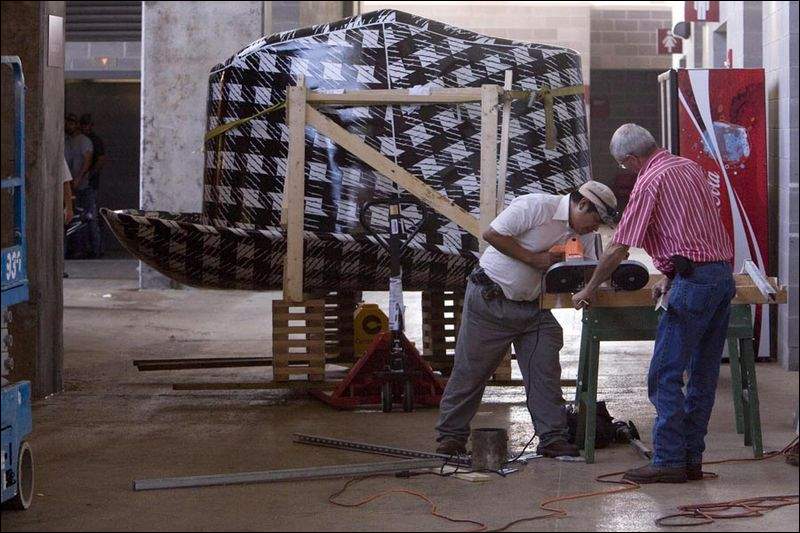 (It's actually the roof for a concession stand called "The Bear's Den," which will serve hot dogs, hamburgers, nachos, and individually-wrapped bourbon-flavored cigarette ceviches-to-go. The hat will be stolen in six months, and we will bet hard American currency on this.