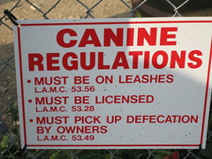 so, the canines have to pick up the defication by their owners? Who should be on the leash there?