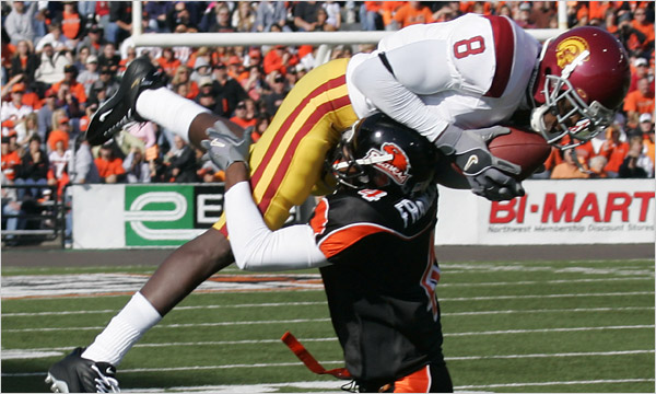 Oregon State nutshot USC in late October of 2006. Repeat: unlikely. Pic: Don Ryan, AP.