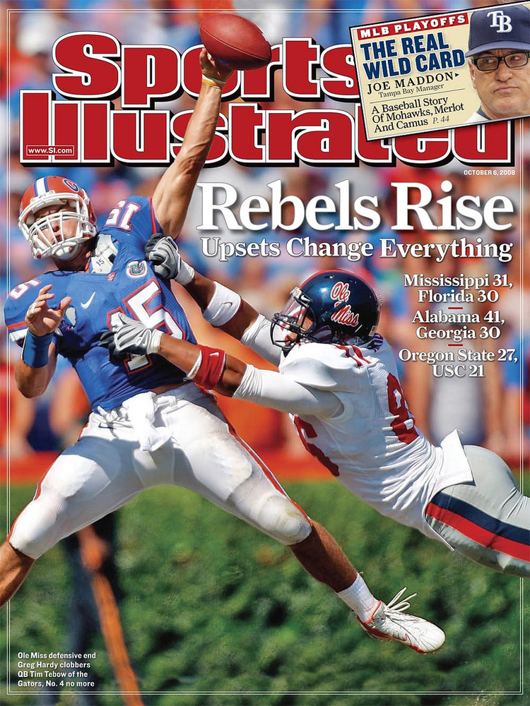 That's a question: we've heard from at least three Ole Miss types this morning that just two weeks after making the cover of SI DE Greg Hardy is out at Ole Miss in theatrical fashion.