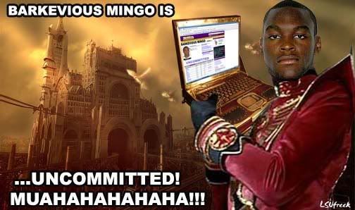 You are undoubtedly wondering about the status of the most important recruit in the history of college football, the immortal and mighty Barkevious Mingo. Never fear: per the LSUFreek Barkevious MingoWatch, we have your update, broadcast live from the balcony of his palace overlooking Mingovia's sprawling and majestic capital of Balthurazar: