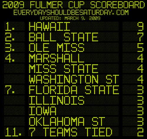 If Marshall's Fulmer Cup offenses could be described as an offensive style, they'd be closest to the late-stage Bill Walsh West Coast offense: short plays where they just get the trouble ball in the hands of playmakers with small charges. It nets them a total of four points here, and reminds us of Marshall's solid long-term performance in the FC markets. Invest now.