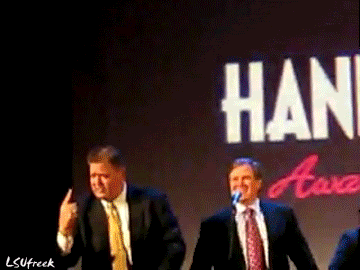 Now we've got 'em moving. Get the expectations up to a realistic level. Nobody on my ass about winning a national title. Yup, Charlie: nine games. That's what they can get. No Beano Cook blowing up the place looking for a crystal football hidden somewhere up my ass. Man, Charlie. It was looking pretty dim there for a while. Pretty dim. You lost to Chan Gailey, man. But here you are, rocking out with Bon Jovi on stage and...