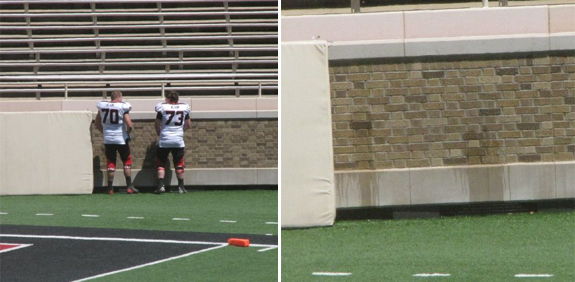 Clearly this shows the Red Rangers displaying great hands and understanding how to control the flow of a game. Shortly after this picture was taken the Oklahoma defensive line came and kicked them in the back of the thighs Switzer-style, causing the linemen to piss uncontrollably all over themselves in the process. (Consolation: it didn't happen on national television this time.)