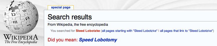 Why, yes I did mean that. Search Wikipedia for the name of Wake Forest's "Steed Lobotzke," and you get a very fair answer in return (click for big): (HT: Rock M Nation.) The randomness of this cannot please us more, especially because we really were looking for instructions on a speed lobotomy. (Quick answer: does AOL want you as an online writer? You have already had one, then, and the procedure would be redundant, and the waste of a perfectly good sterile flexible scalpel.) Kellen Lewis leaves in a fog. The entire Indiana offense, Kellen Lewis, is gone from the team for undisclosed reasons after being moved to wide receiver and then committing some unspecified violation of team rules. Over the Pylon suspects weed, as his grades were allegedly okay, but it's further proof that mutant athletes between the age of 18-22 who smoke pot are still mutant athletes no matter how much you put in their lungs. (They're just mutant athletes who fiend for Flamin' Hots between 10 pm and 2 am.) Melekilikki Maka is Hawaii's way......of saying holy shit what the fuck is wrong with Hawaii's anger management skills as a football team. Points to come--since they're undoubtedly your new Fulmer Cup team leaders--but perhaps June Jones wasn't entirely insane after all. Later in half we're calling a fake punt try to stop it LOL. Les Miles is getting militant about his twittering, saying he will tweet at halftime, he will tweet before the game, he will tweet on the beaches, he will tweet in the streets, he will use it because it is yet another way to get recruits, control spin in the media, and if you're Bill Stewart, a way to give someone the lovable digital country grampa you never had. Miles feed is here, and it's as you imagined: fired-up, a bit scattered, and appropriately prone to pushing the 140 character limit. No, keep it up, it's working. Ted Miller does an ESPN post based on a non-ESPN blog idea, does it well, and expands on said idea, showing he a.) actually reads blogs, and b.) knows what to do with them--i.e., link, expand, engage, and get chatty and hyperlinky with it. Cocktails duly awarded both for the technique, and for reminding us all that the Pac-10's round robin scheduling is both burly and damaging to the teams' national profile. |