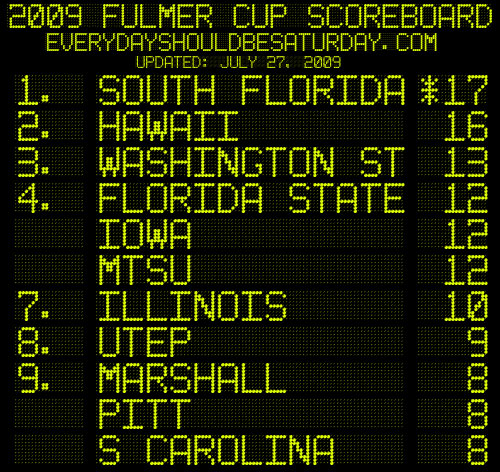 This week's Fulmer Cupdate and the Big Board are brought to you by Brian, who remains hung like Sir Reggie Nelson of Concussionville, and by Doc Bottom's Aspray, helping you keep your ass minty fresh since 2008. Enjoy.