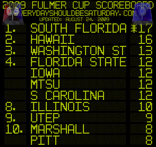Geathers got into a fight with a security guard at Club Ice, or tried to make love to a windmill. The defense will use the latter, but the former is what got the cops there and got Geathers charged with resisting arrest, disorderly conduct and public drunkenness, all misdemeanors worth one point each. Tag on the requisite mugshot goodness bonus point, and South Carolina is awarded four points in the Fulmer Cup, thus making the only big move of significance on the Big Board this week. Teammate Jarvis Giles was involved in some kind of domestic disturbance on campus with a woman, but with no charges filed yet, we refrain, and simply state that the beginning of football season means couples sparring over time and attention, and sometimes that literally means "sparring couples."