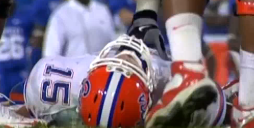 On review, it's a clean hit, bad fall, worse impact with knee, and a medical condition he'll deal with for at least the next three to four weeks. When/if he takes the field against LSU, he will not be fully recovered. That is not supposition. That is medical fact, with a return to the field that soon going against the emerging consensus that concussions should be treated as injuries with a long time frame for recovery.