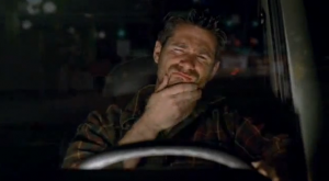...to the high desert, where he hallucinates the vision of a giant half-eagle, half-woman who chases him and his truck full of Barbasol across the mesas of Northern Arizona screaming the lyrics to "Roll To Me" by Del Amitri for hours on end.