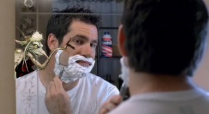 The Barbasol is laced with a powerful neurotoxin, of course, one completely undetectable to screens that will permeate through his skin and eventually kill him. Taking the bait, the man goes upstairs and shaves his shame-beard away, realizing both that he has been running from his problems, and that the goblin with a waistcoat and top hat addressing him in the mirror from over his shoulder is, yes, most likely a hallucination brought on by sleep deprivation and constant multiple-drug use.