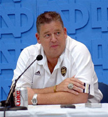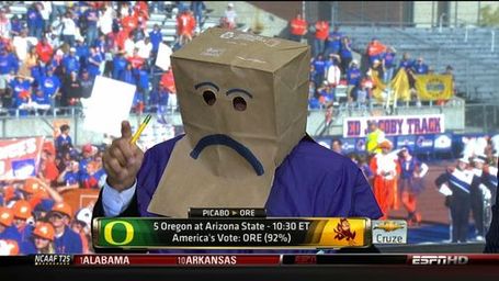 BAGHEAD: Silence! We have come to a decision. Your failure is great, Coach Kelly, and your punishment must be harsh indeed. Thus we order the following: You shall survive this season, but after that you shall descend into an unending purgatory of Champs Sports and Pinstripe Bowls. Seasons not bad enough to end your misery, yet not good enough to make anyone happy. Injuries shall plague you, and at crucial moments all that you know shall be ripped from your brain, so as to ensure the worst possible outcome. Eventually you shall tire of this Sisyphean existence, and you will be sent to your deserved reward.