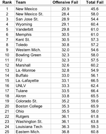 For 3 solid weeks, the Lobos have been winning/losing this race to ultimate on-field DERP. On average, UNM can only advance the ball 20.9 yards before they a) turn it over b) punt c) fail to convert. In other words, the only hope they have of scoring is if they start their drive just outside of the red zone. In contrast, NMSU is far more potent on offense, as they can handle a MASSIVE 8.4 yard buffer in which to operate. 8.4 yards TO VICTORY, AGGIES.