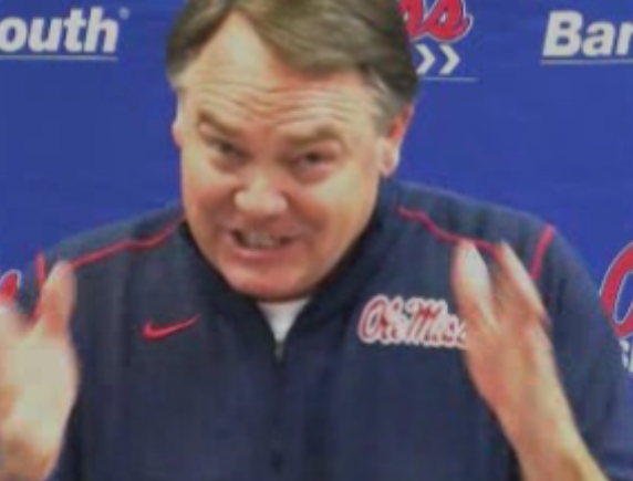 This is Houston Nutt reminding you gently that before he got there Ole Miss hadn't had two solid shits in a row for the span of half a century, and that he's the magical fiber supplement that makes this all happen, a kind of charismatic evangelical Weetabix for the football colon. As ballsy as it is to do this in a year when you lost to Jacksonville State, got blown out by Tennessee, and lost to Vanderbilt, it's...it's true. It's totally and completely true. Free pass given here, Reverend. Proceed.