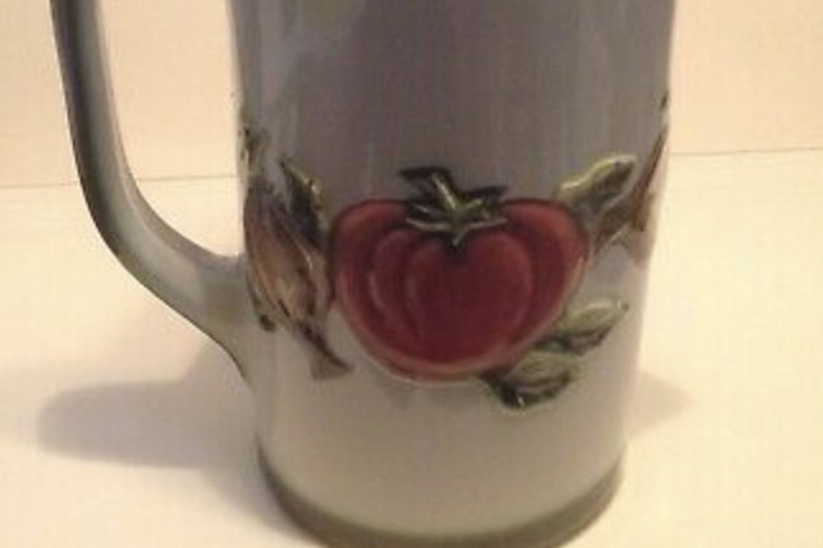 A beautiful piece of hand-crafted stoneware, created by Louisville’s own Louisville Stoneware company, renowned for the quality and durability of their craftsmanship. It depicts an array of fresh vegetables, the sort of things you might call “better ingredients”, were you so inclined.